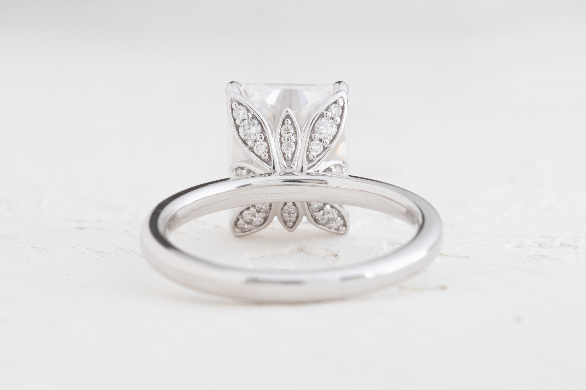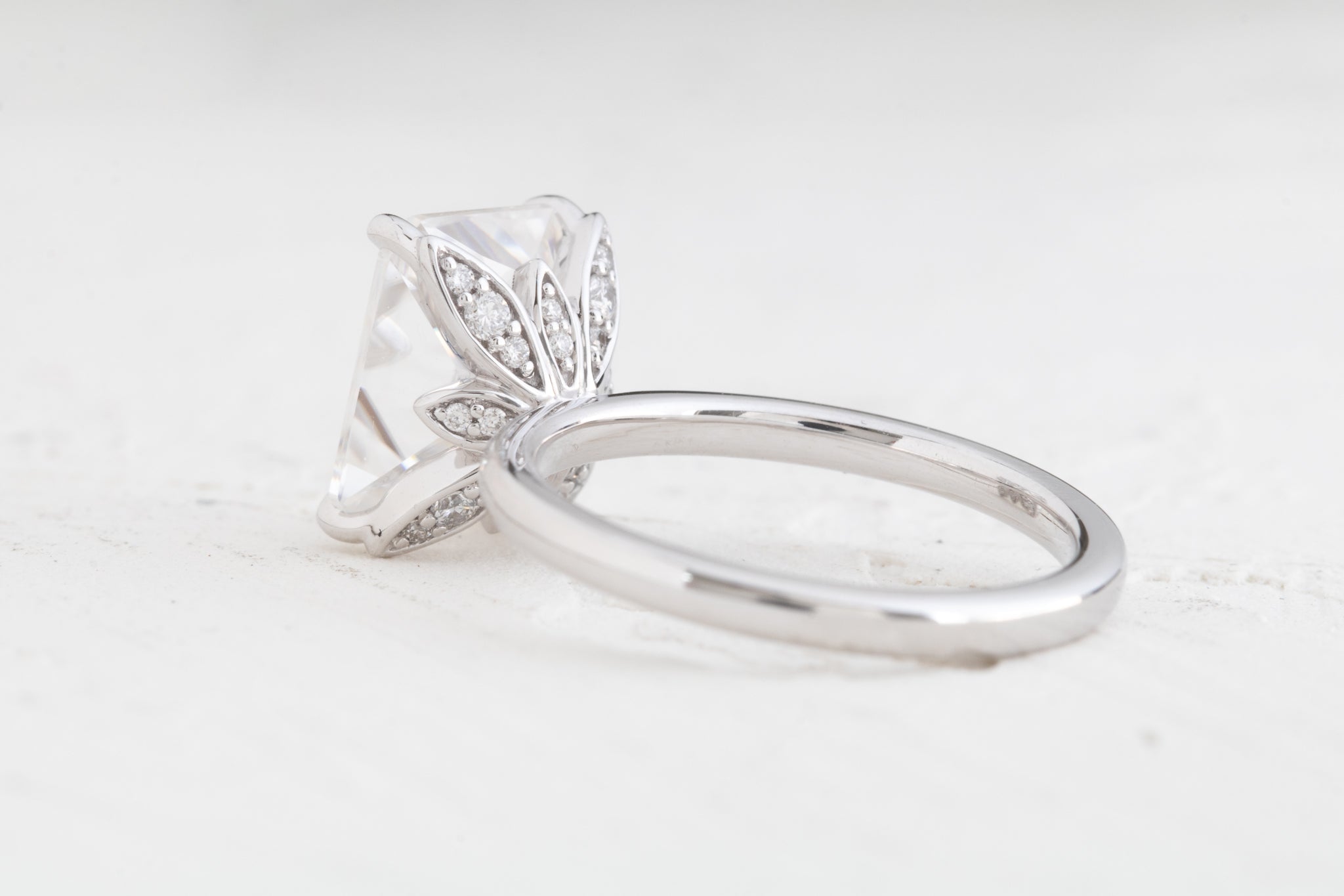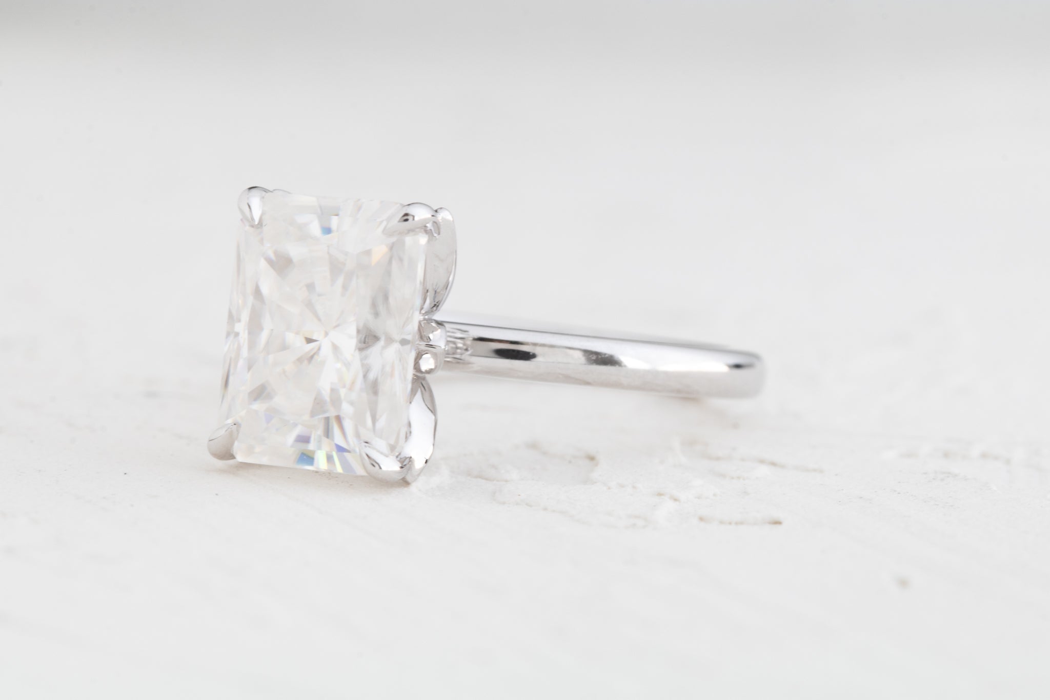 • Shown with a 10x8mm Radiant moissanite set in 14k white gold