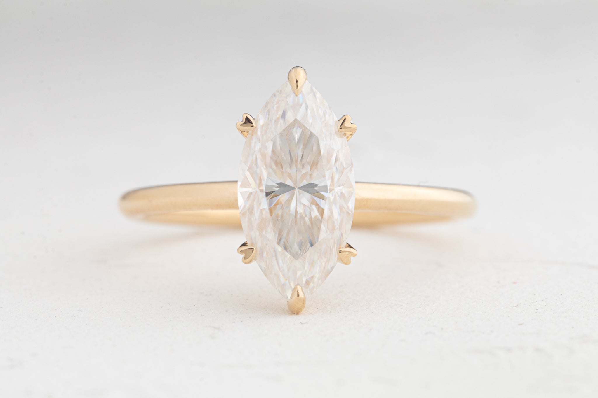 • Also shown with a 3ct marquise moissanite in 18k yellow gold, 1.8mm band