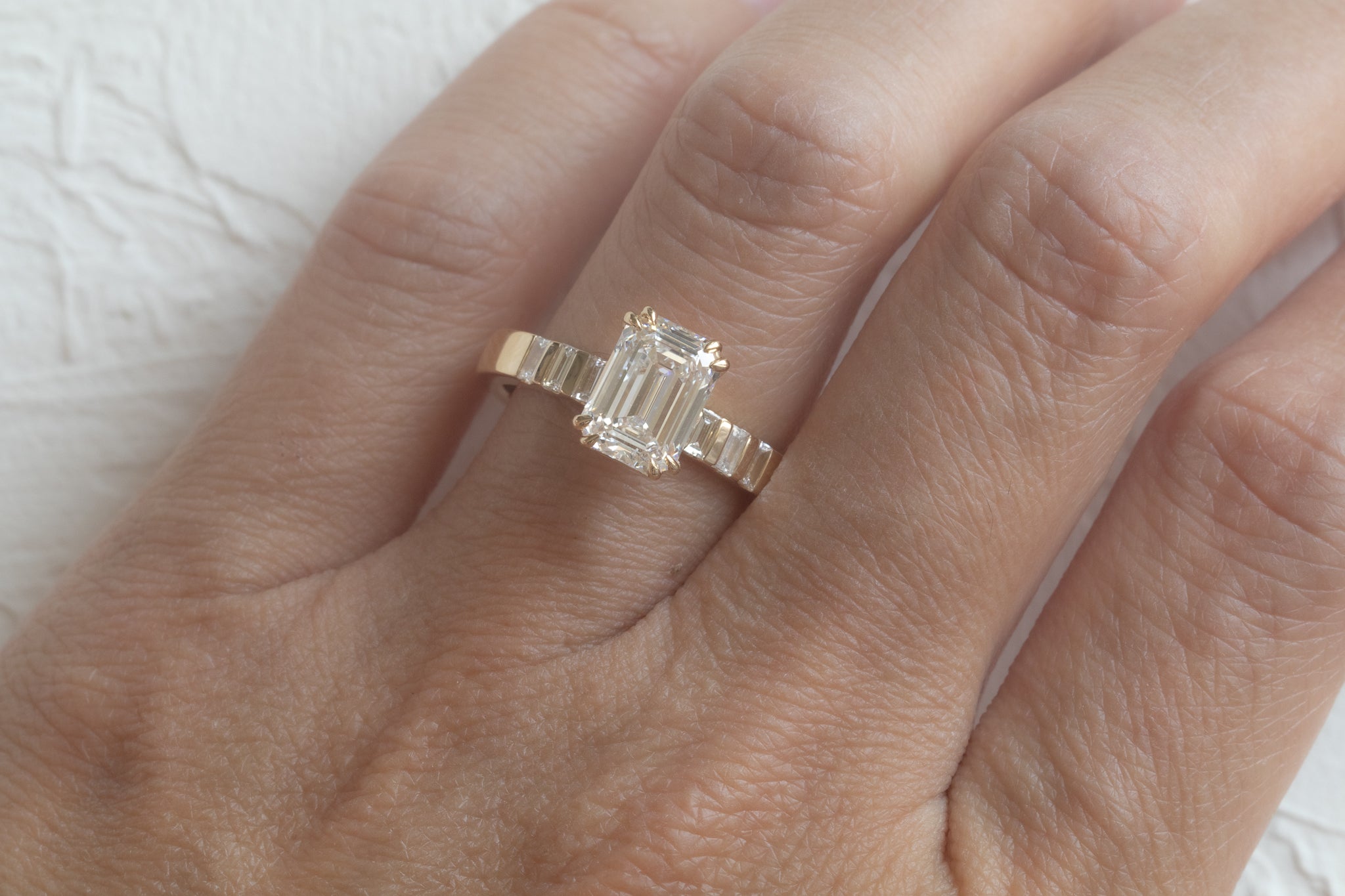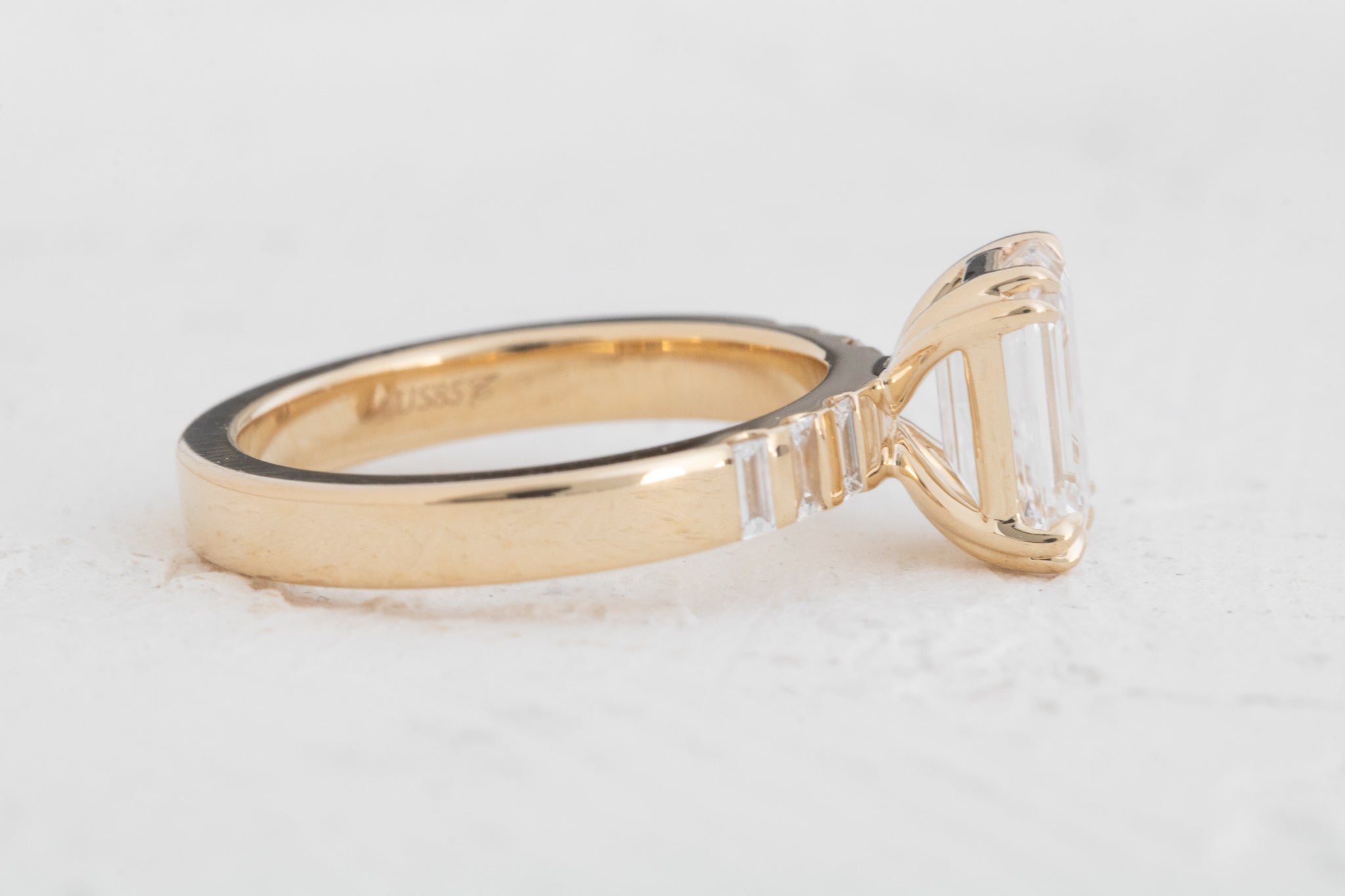 • Shown with 2ct emerald lab diamond and 14K yellow gold setting
